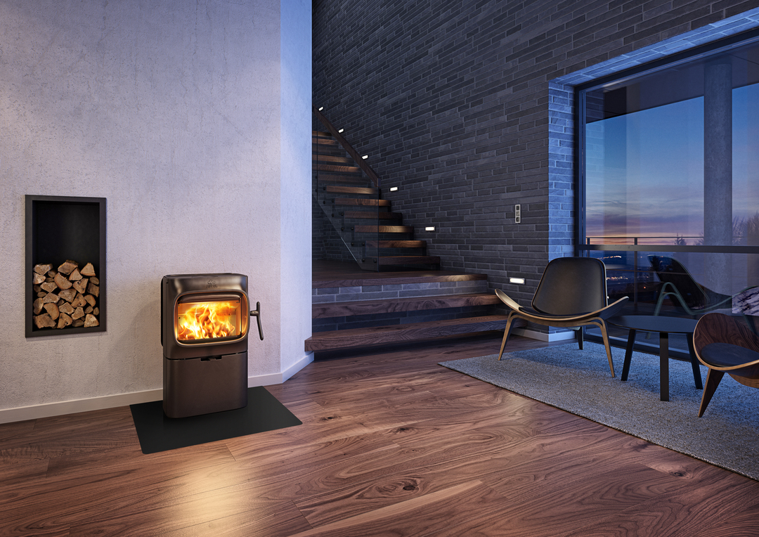 Avec son format « de poche », le poêle à bois Jøtul F 105 R B sort du lot par son caractère unique et chaleureux. Soulignons en particulier sa porte vitrée horizontale, offrant une belle vue sur le feu, et son système de contrôle de combustion simple et intuitif. Sa base en fonte prolonge les lignes de la chambre de combustion. Conçu pour offrir un rendement optimal même à puissance réduite, le Jøtul F 105 R B peut également affronter la rigueur de l’hiver norvégien.