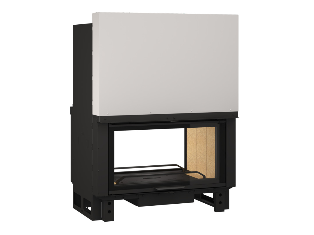 Ce foyer à bois Double Face est doté de vitres au format 16/9ème, placées de part et d’autre du feu.