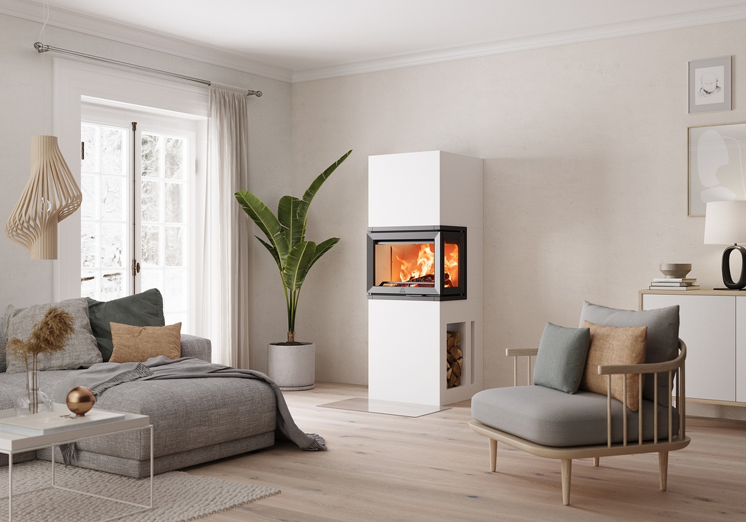 Le poêle-cheminée Jøtul FS 520 FRL sublime le foyer Jøtul I 520 3 vitres avec un nouvel habillage en silicate de calcium. Ce matériau isolant vous permet de le faire installer tout contre un mur pour en réduire l’encombrement. Adaptez le coloris de ce modèle à votre intérieur : vous pouvez peindre les parements avec la couleur de votre choix ! Les lignes droites et la modernité de son habillage ne vous laisseront pas indifférent.