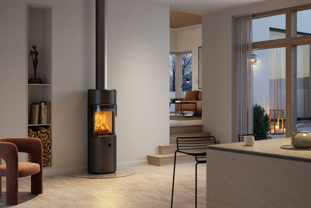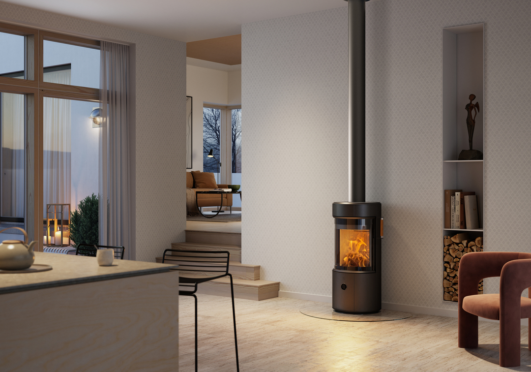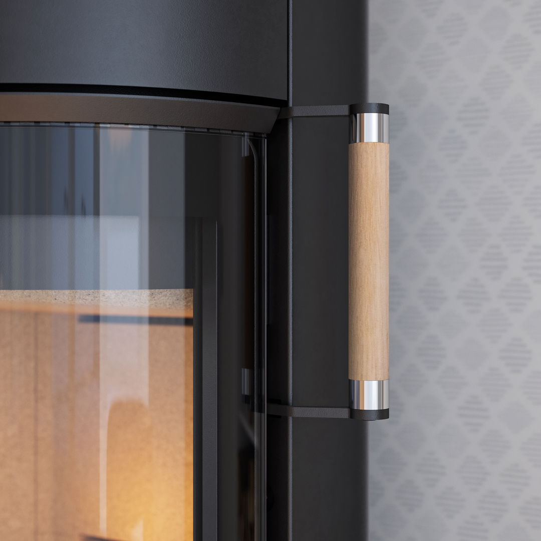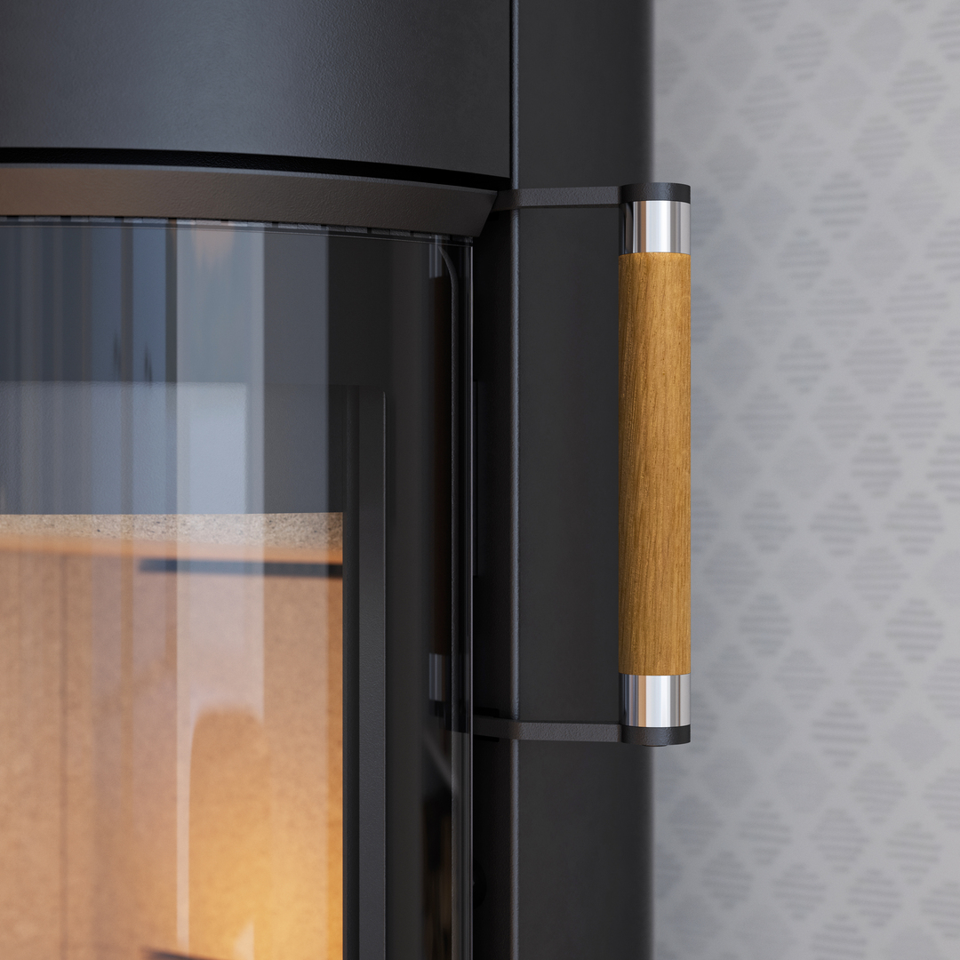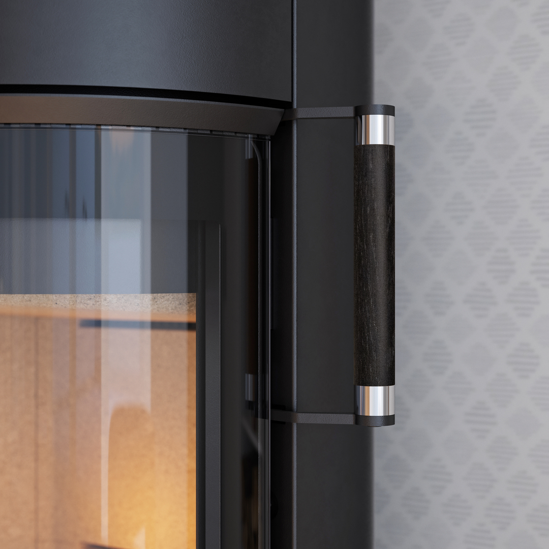 Le SCAN 67 est un poêle à bois au design élancé et élégant grâce à sa silhouette en « D ». Sa porte galbée offre une vue panoramique et à 160° sur les flammes ! Vous pouvez personnaliser la hauteur de votre poêle à bois et également remplacer la poignée en chêne noir par l’une des 3 autres finitions disponibles en option.