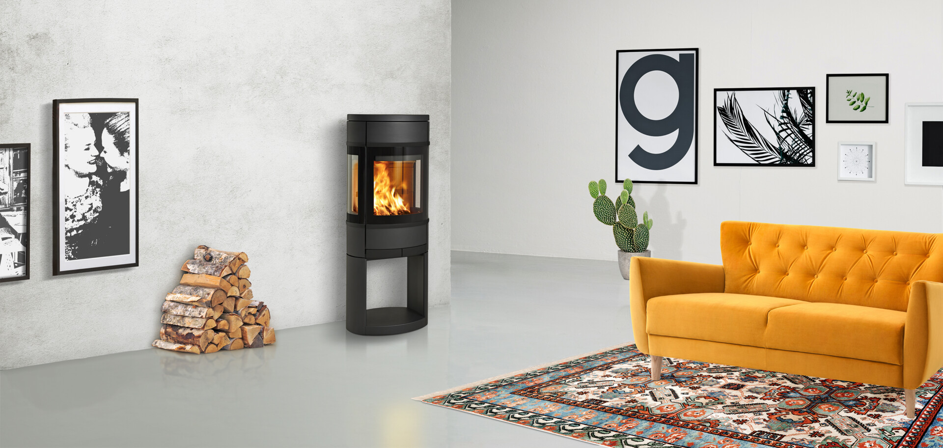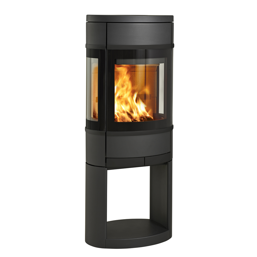 Un élégant piétement traversant caractérise ce modèle. Profitez du spectacle des flammes grâce à ses vitres latérales.