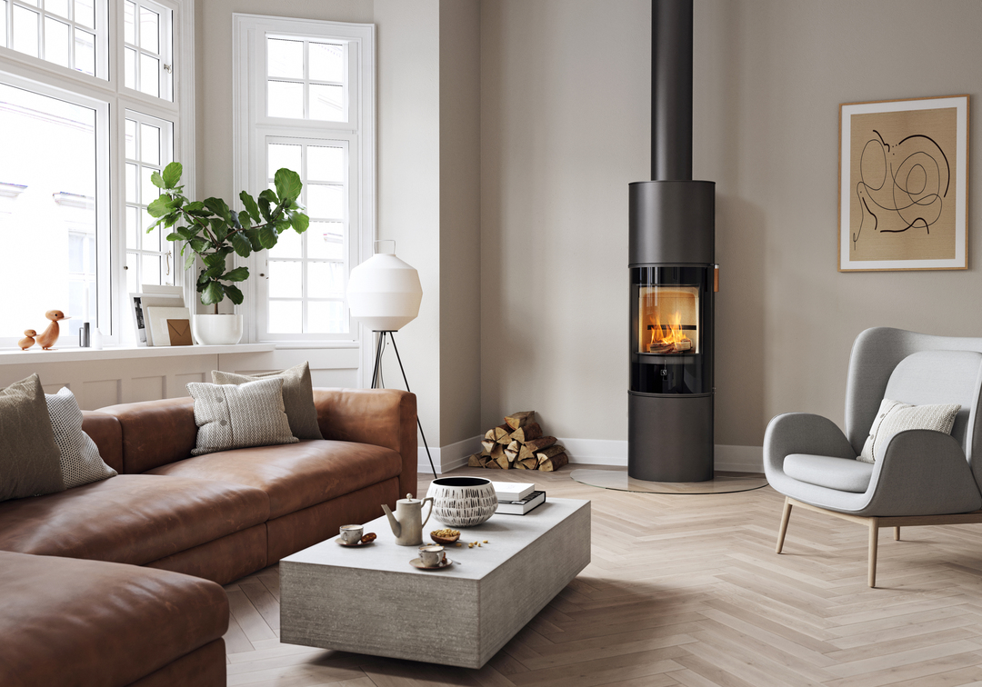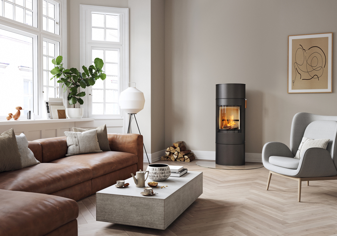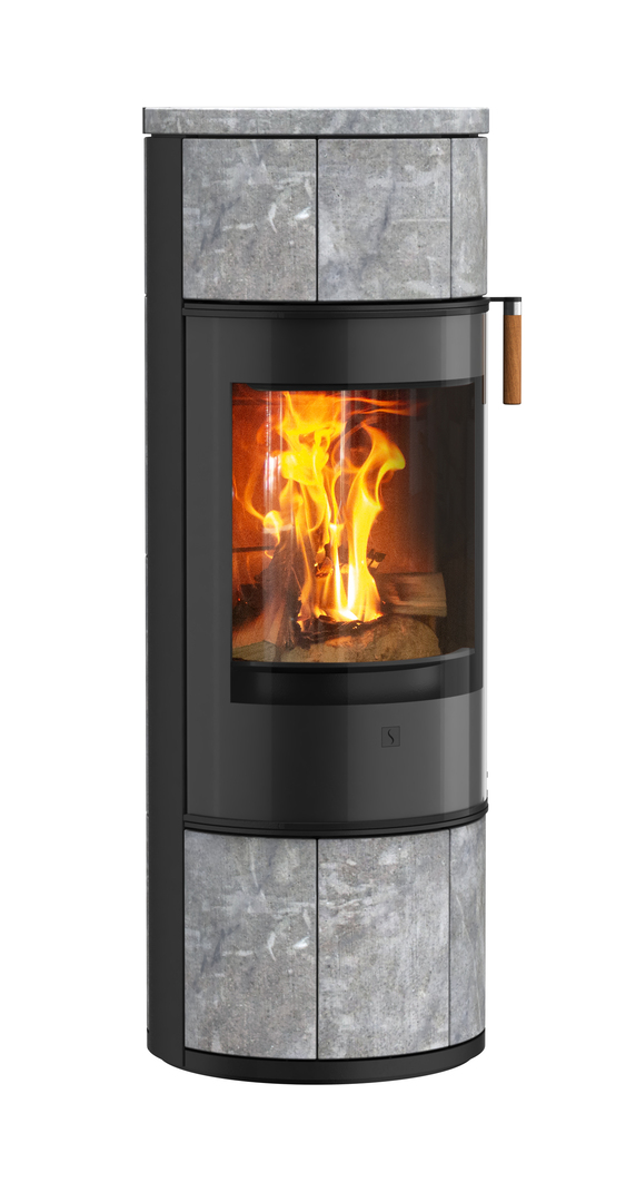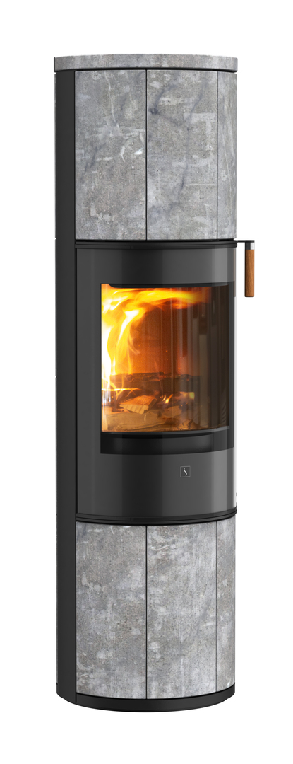 Sa poignée haute est équipée d’un système de fermeture automatique qui garantit une fermeture silencieuse et tout en douceur après le chargement des bûches. Choisissez entre 4 tons de chêne différents pour la poignée haute de la porte et habillez le dessus de votre poêle en y ajoutant un plateau en verre noir pour plus de brillance, ou en pierre ollaire pour plus d’élégance. Vous pouvez choisir de l’équiper d’un plateau pivotant en option afin de profiter de la vue du feu où que vous soyez.